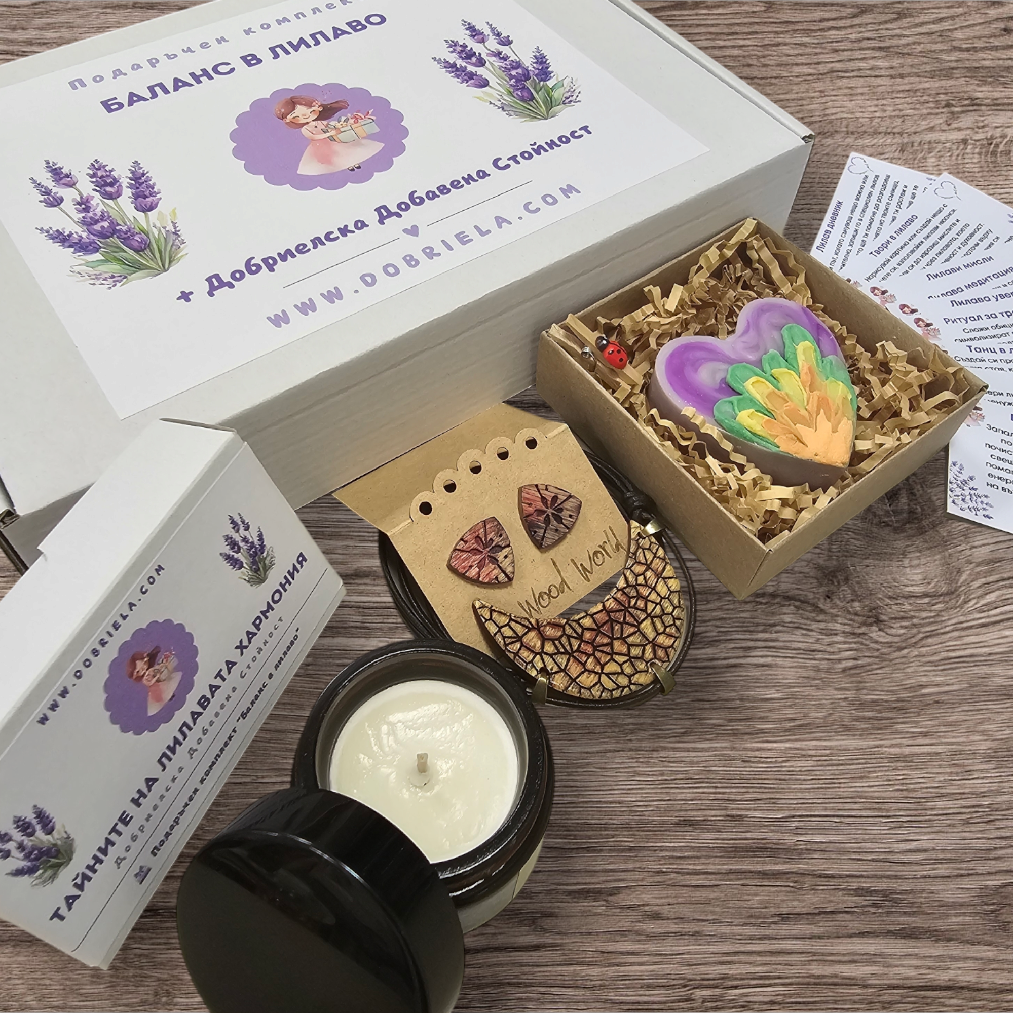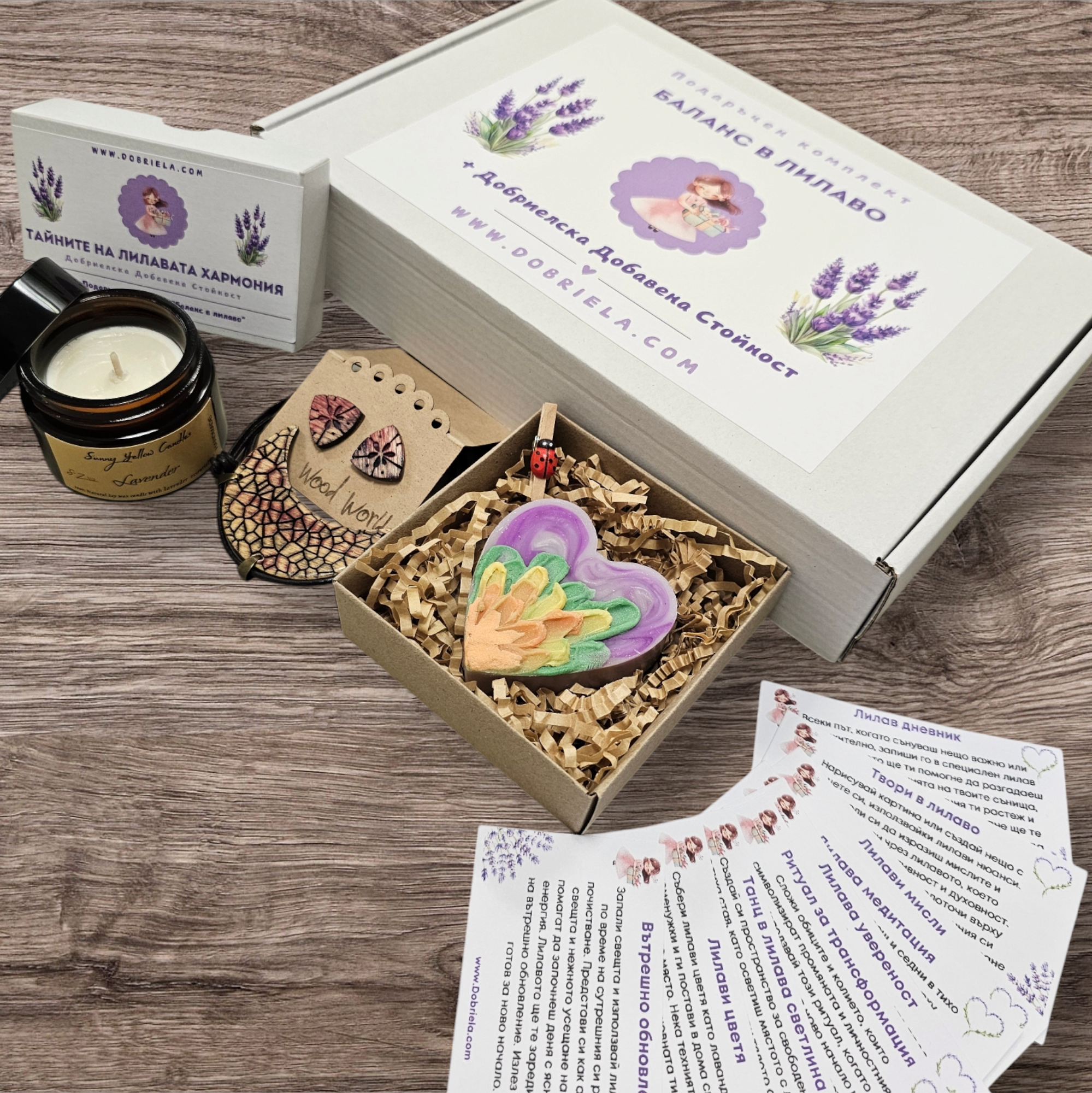 Потопете се в магията на баланса и хармонията с уникалния подаръчен комплект "Баланс в лилаво". Този изящен подарък съчетава изкуство, грижа и вдъхновение в едно – перфектен избор за жената, която обича красотата, природата и живота в хармония.