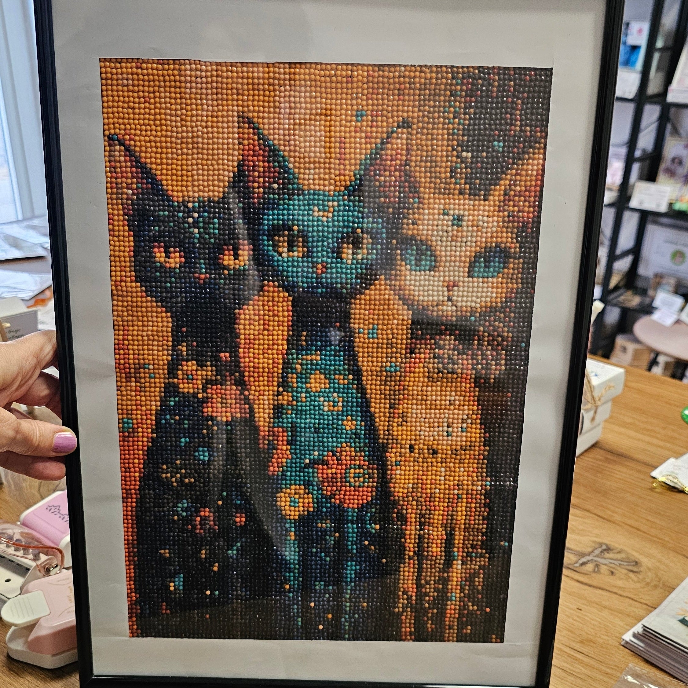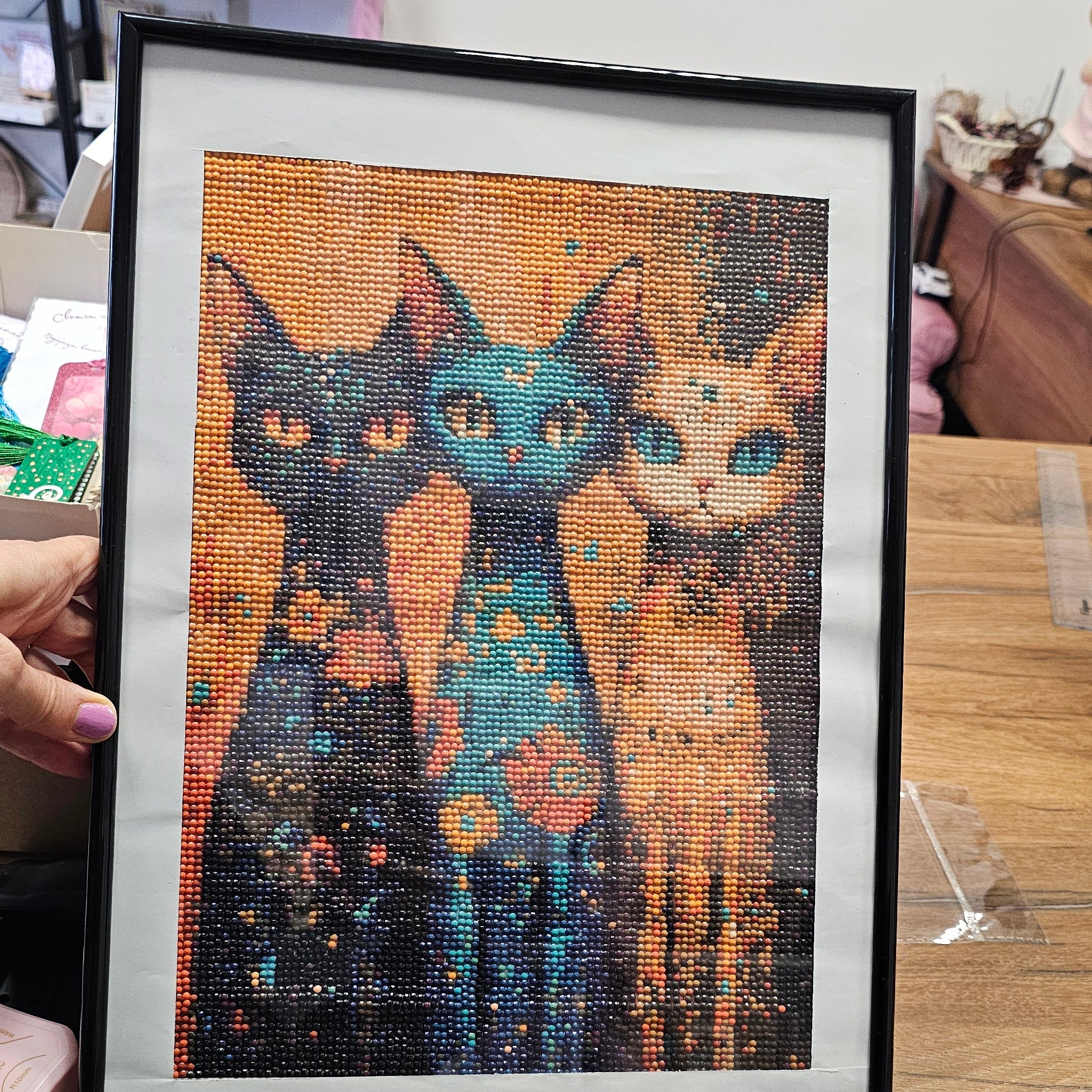 Покани магията в дома си с този изящен диамантен гоблен, който съчетава мистичността на котките, блясъка на диамантените камъчета и изисканата визия на истинско ръчно изкуство.