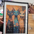 На картината оживяват три шарени котки, всяка със своя индивидуална харизма – грациозни, елегантни и пропити с онова фино мистично усещане, което само котките притежават. Те стоят като три орисници, които носят в дома ти красота, енергия и малко необяснима магичност.