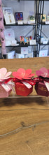Красива, стилна кутийка (5,5 см височина / 8 см ширина), украсена с изящно цвете отгоре и завързана с елегантна панделка с надпис For You.