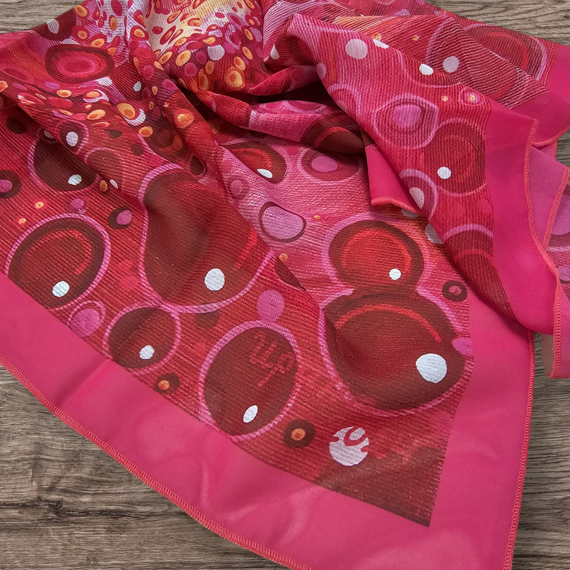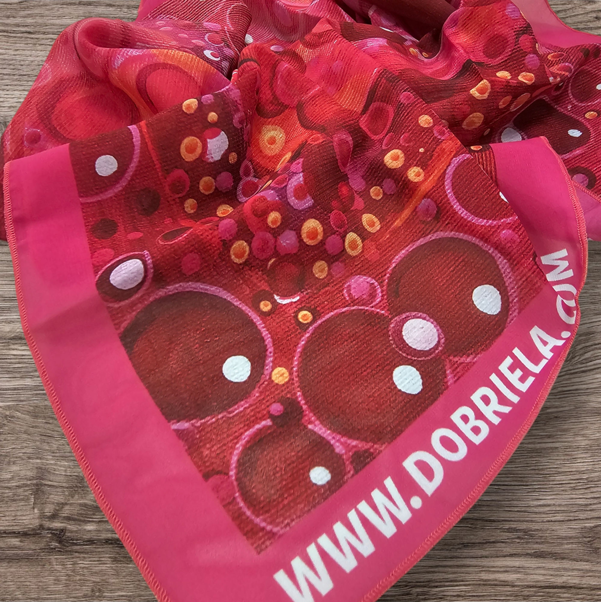 С размер 60 × 60 см, той е чудесен аксесоар за всяка дама – подходящ както за ежедневно носене, така и като артистичен акцент към по-специална визия.